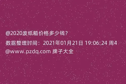 我调查发现,2020废纸箱回收价格一般为2千元左右一吨,但是每一个地方的价格都不统一。