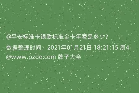 平安标准卡银联标准金卡年费是多少?