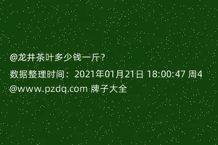 我帮你查了一下,由于品质等级不同,龙井茶叶的价格也是不太一样的,不过一般都是在几十元到几百元左右一斤吧。