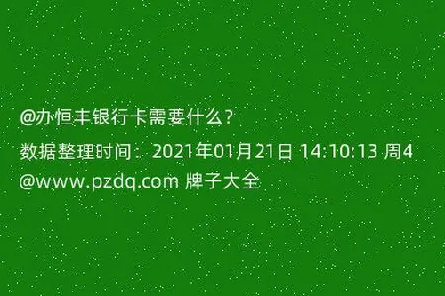 现在的银行都有属于自己的卡,但是我不清楚,恒丰银行的卡办理起来需要什么东西,所以打算了解一下的,请问大家,办恒丰银行卡需要什么?有没有人知道?