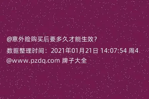 你好,为了日后的生活保障着想,我最近打算给自己购买一份意外保险,想了解一下,意外险购买后要多久才能生效?因为没有买过不太了解,知道的告知一下,谢谢。