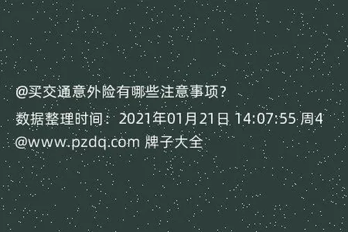 你好,购买交通意外险注意事项有:要整理以及保管好相关的资料。购买保险之后的票据和相关资料以及发生事故后的证明、票据等必须要妥善保管,希望帮到你。