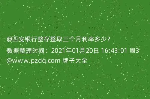 我想请问大家一个问题,就是西安银行整存整取三个月利率多少?最近我想办理西安银行三个月整存整取,但是不知道利率是多少,有朋友知道吗?麻烦知道的解答一下,谢谢!