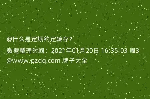 我告诉你,什么是定期约定转存,其实是指银行接受储户的委托,在储户委托的转账日期按照约定的转存金额和转帐方式进行账务转存。