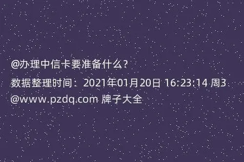 请问一下大家,办理中信卡要准备什么?现在我们的日常生活基本上都离不开银行的业务,那么有人知道办理中信卡需要什么东西吗,想了解一下,麻烦大家告诉我吧,谢谢你们了。