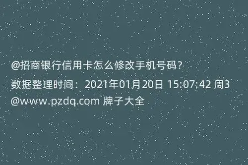 招商银行信用卡怎么修改手机号码?我在招商银行那边办理了一张信用卡的,最近换了一张信用卡,打算修改手机号码的,也不知道怎么操作,有谁知道的,知道的解答吧,谢谢了。