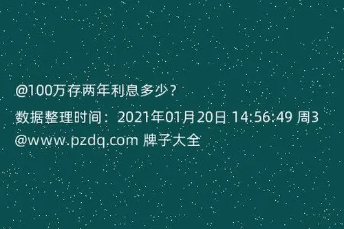 据我所知,按照现在的央行利率两年2.10%计算,100万存两年利息是1000000x2.10%x2=42000元。
