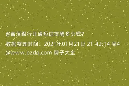每一家银行都有属于自己的短信提醒功能,但是我不知道,现在的短信服务费用多少钱,请问大家,富滇银行开通短信提醒多少钱?知道的朋友请解答一下吧,谢谢。