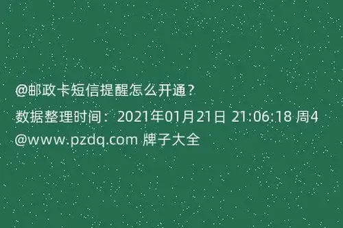 据了解,邮政卡短信提醒是可以到银行开通的。
