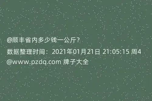 顺丰是一家快递公司来的,它的收费标准基本上是全国统一的,那么请问大家,顺丰省内多少钱一公斤?想要了解一下的,有没有大神可以给我讲解一下的,谢谢你了。