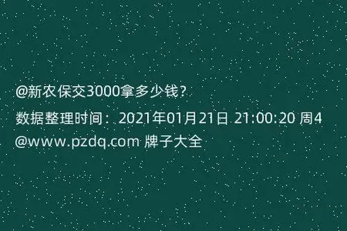 农保也是需要交钱的,可是我不清楚,农保交满期限之后,可以获得多少钱,打算了解了解的,请问大家,新农保交3000一个月拿多少钱?有没有大神可以告我的,谢谢。