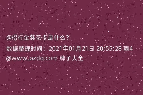 每一个银行都有属于自己的联名信用卡,但是我从来没有接触过招行的信用卡,所以不清楚,它们的金葵花卡指的是什么,请问大家,招行金葵花卡是什么?请解答。