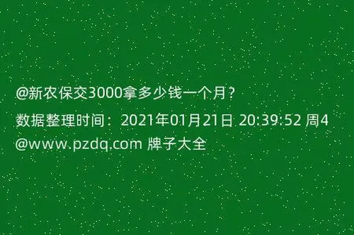 新农保交3000每月不低于拿400元,但是不同地区补贴金额有所差异,以上数据仅供参考。