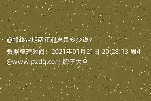 每一家银行都有属于自己的定期存款业务,但是银行不同,银行的利息也是不一样的,请问大家,邮政定期两年利息是多少钱,有知道的吗,知道的朋友请解答一下。