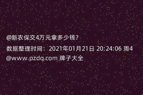 现在的农保是符合相关条件的朋友都可以拿到钱的,可是我不清楚,现在可以拿多少钱,打算了解一下的,请问大家,新农保交4万元拿多少钱?有没有大神可以告知。