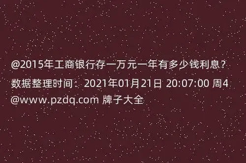 不管是哪一家银行都有属于自己的存款业务,但是我平时不怎么接触工商银行的业务,所以不清楚,2015年工商银行存一万元一年有多少钱利息,有知道的吗,请解答。