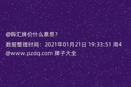 购汇牌价是指定银行外汇兑换挂牌价,是各银行根据中国人民银行公布的人民币市场中间价以及国际外汇市场行情,制定的各种外币与人民币之间的买卖价格。