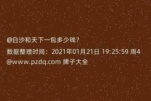 我平时很少接触香烟方面的事情的,所以我不清楚,现在的香烟售价多少,请问大家,白沙和天下一包多少钱?有谁知道吗,打算了解一下的,求告诉我,谢谢你了。